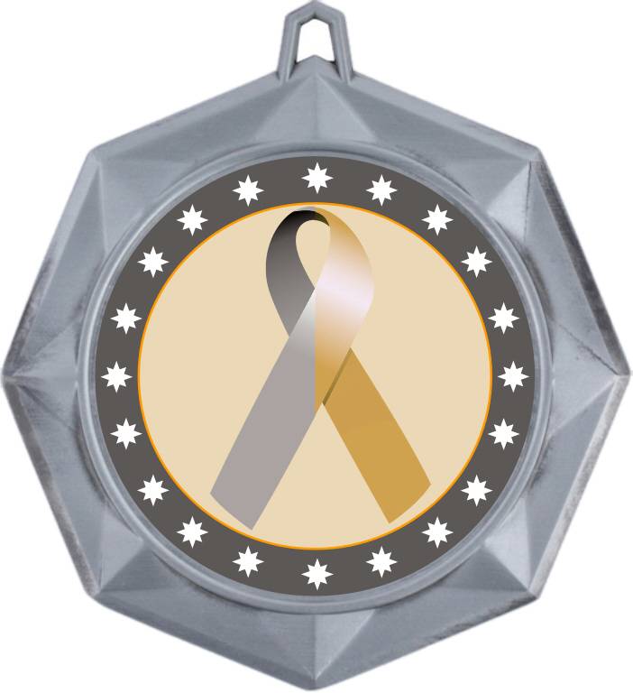 3" Gold and Silver Ribbon Awareness Antique Finish Medal