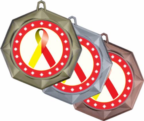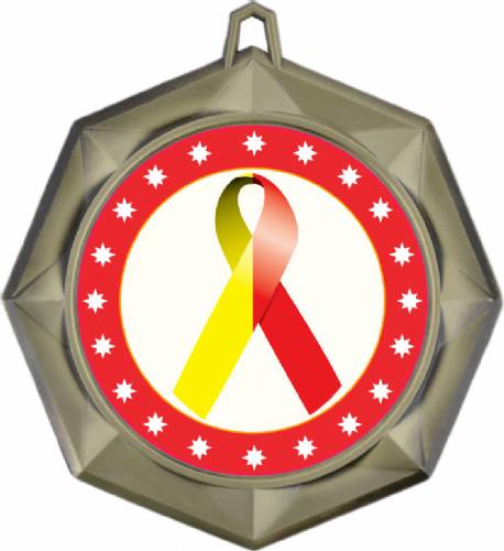 3" Red and Yellow Ribbon Awareness Antique Finish Medal