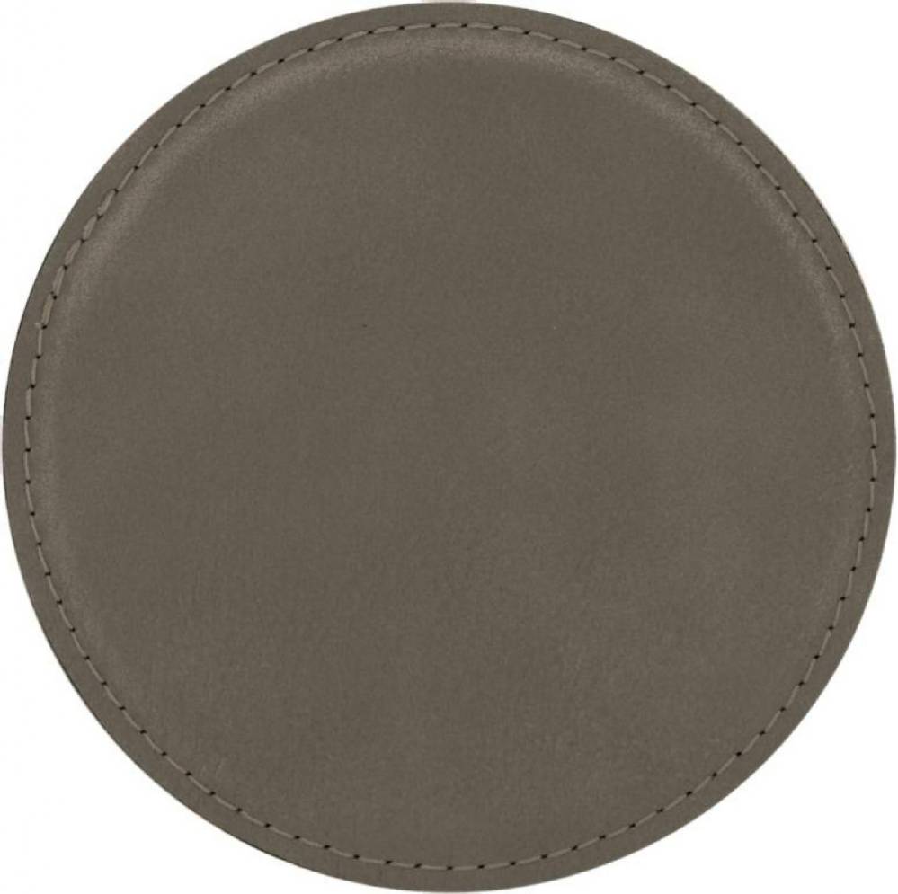 4" Gray Round Leatherette Coaster