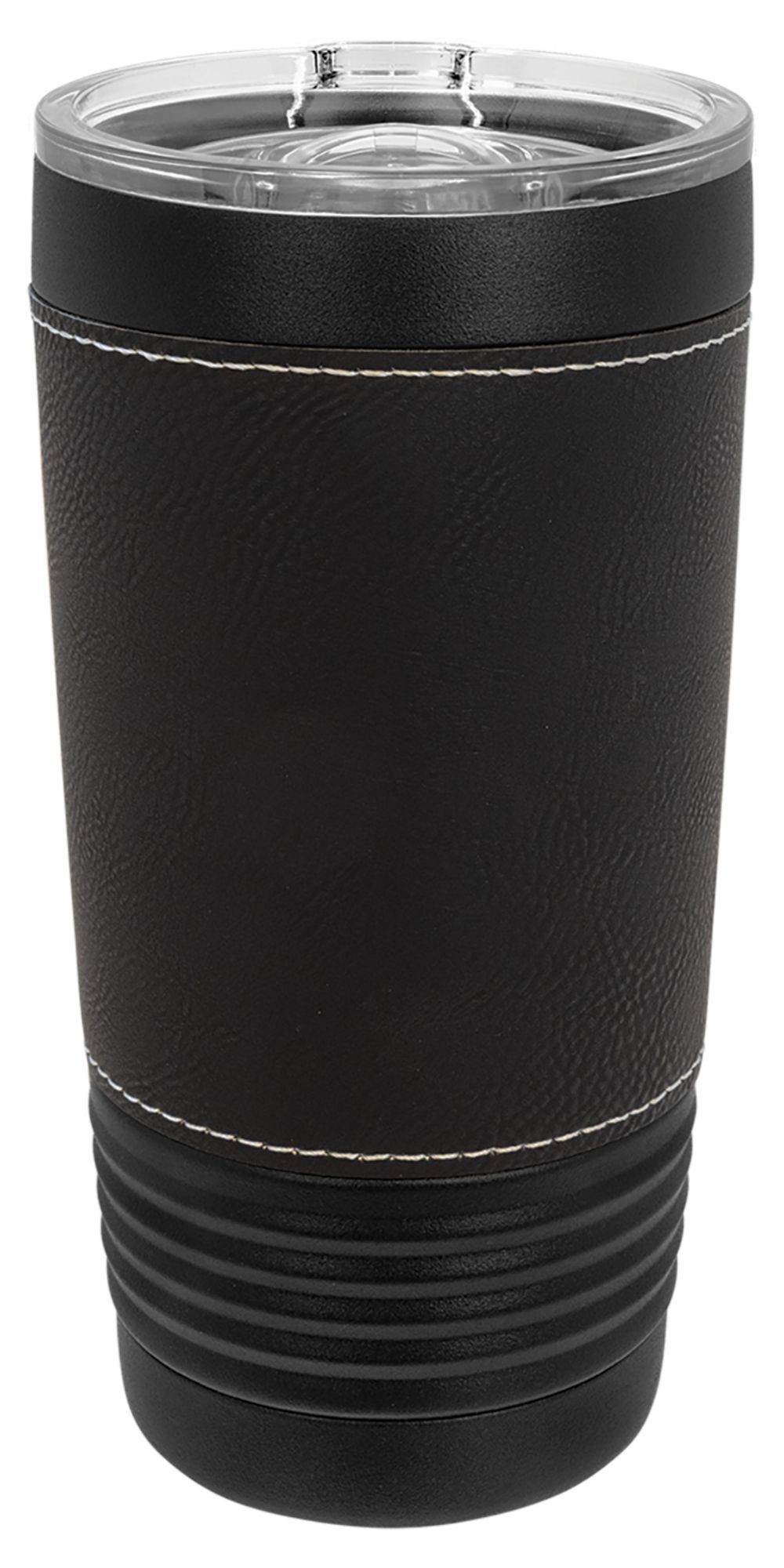 Black 20oz Polar Camel Vacuum Insulated Tumbler with Rawhide/Black Leatherette Grip