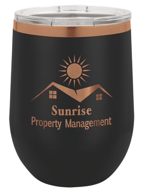 Black/Rose Gold 12oz Polar Camel ION-Plated Vacuum Insulated Wine Tumbler