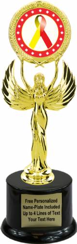 Gold 7 1/2" Red Yellow Ribbon Awareness Trophy Figure
