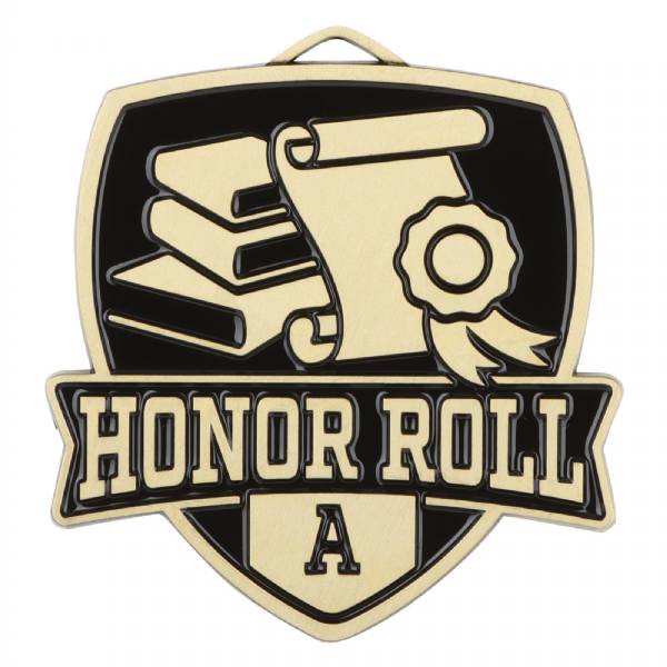"A" Honor Roll 2 1/2" Shield Series Award Medal