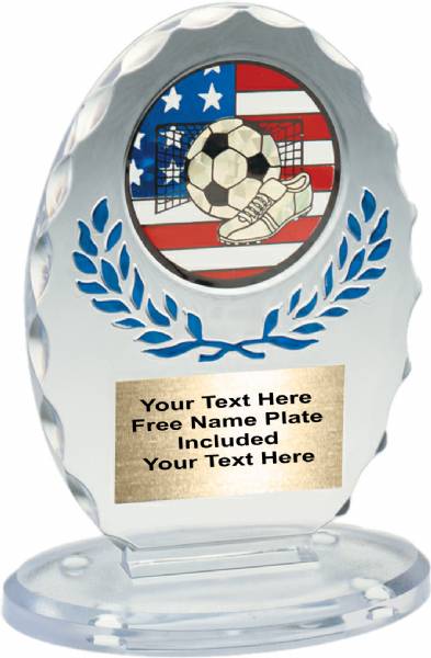 Clear / Blue 5 1/4" Standing Oval Trophy #1Clear / Blue 5 1/4" Standing Oval Trophy #2