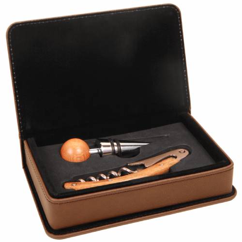 Dark Brown Leatherette 2-Piece Wine Tool Gift Set